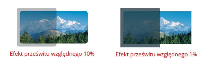 - poniżej zdjęcie porównawcze dla efektu prześwitu pomiędzy 10% a 1%