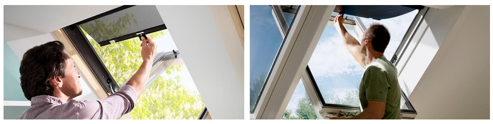 - Można łączyć z innymi roletami wewnętrznymi VELUX jako element dekoracyjny lub w celu zaciemnienia czy ochrony przed owadami