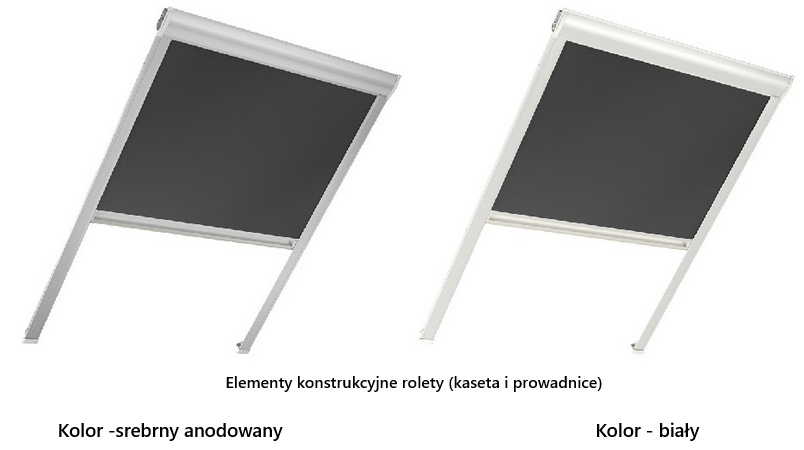 Rolety dostępne są z prowadnicami w 2 kolorach srebrny anodowany oraz biały