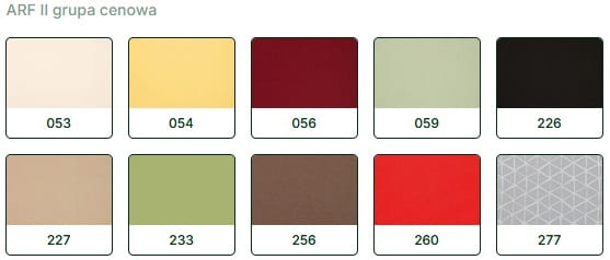 Roleta ARF NL wyposażona jest w wysokiej jakości tkaninę zaciemniającą, która skutecznie blokuje światło dzienne, zapewniając komfort i prywatność w pomieszczeniu. Specjalna warstwa od strony szyby skutecznie odbija promienie słoneczne chroniąc wnętrze przed promieniowaniem UV, a zimą ogranicza straty ciepła. Tkanina charakteryzuje się zerową przepuszczalnością światła, co pozwala na uzyskanie niemal całkowitego zaciemnienia. Materiał jest dostępny w różnorodnej gamie kolorystycznej, z możliwością wyboru spośród dwóch grup cenowych.