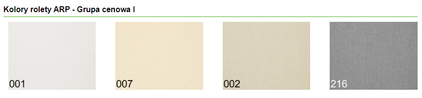 Roleta ARP to trwała tkanina zrolowana na wałku ze sprężyną. Wyposażona jest w estetyczną listwę aluminiową kryjącą wałek rolety i w aluminiowe prowadnice kryjące brzegi materiału i pozwalające ustawić zasłonę w dowolnej pozycji.