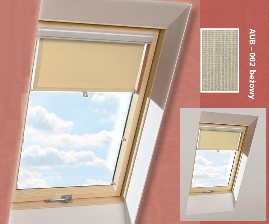 Roleta AUB przeznaczona głównie do okien dachowych: OptiLight w wersji B, VB, D-Pro, VK, TLP oraz FAKRO (wszystkie typy z wyjątkiem FAKRO FTT U5)