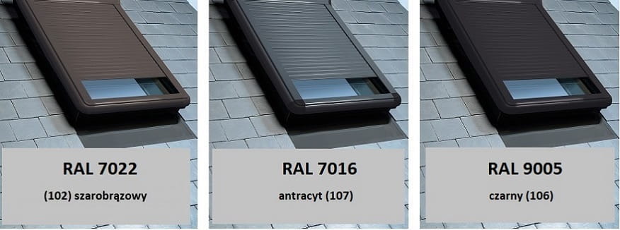 Dla okien FAKRO dostępne są wszystkie 3 kolory tl. RAL7022, RAL7016, RAL9005,